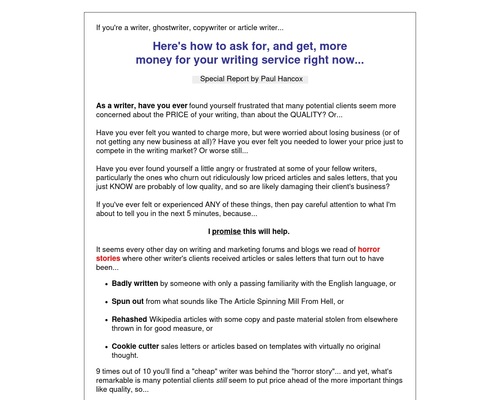 Write To More Money – Freelance Writing Report Pays 50%